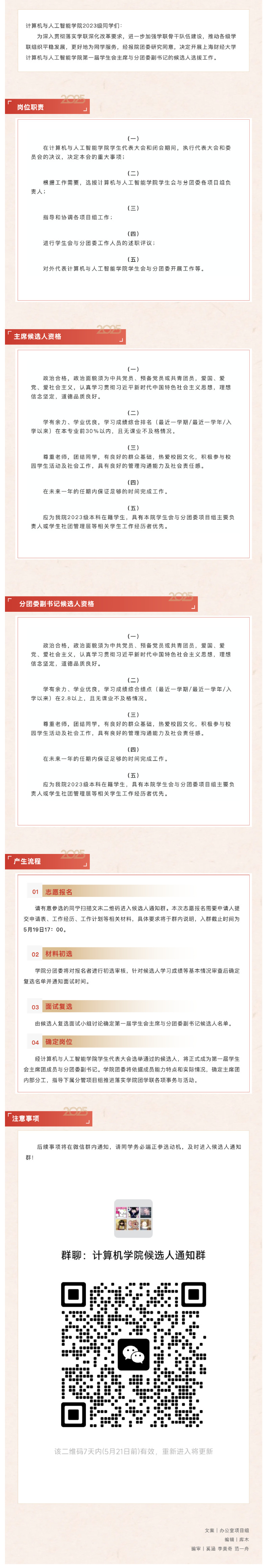通知 | 关于开展2025年计算机与人工智能学院学生会主席与分团委副书记候选人选拔工作的通知