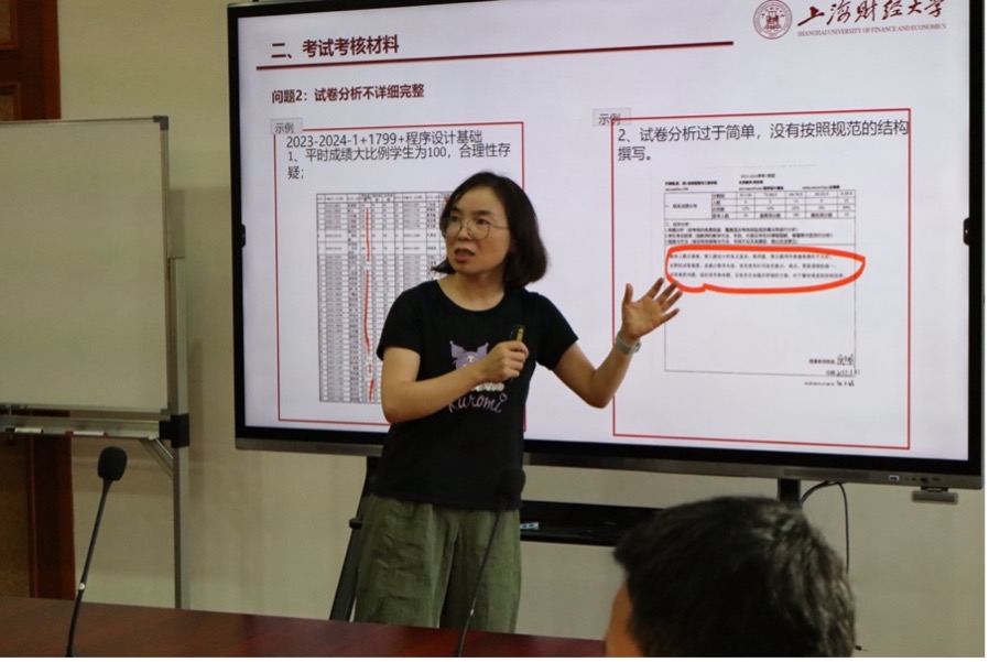 会议聚焦学院近期教学档案抽查情况与存在问题,系统梳理当前教学材料管理中存在的薄弱环节。会上,方慧老师就教学档案抽查总体情况作汇报:本次抽查材料涵盖教学大纲及进度表、试卷、论文、实践教学材料等多类内容,本次抽查暴露目前教学档案存在的一系列问题。会议从教学大纲与教学进度表、考试考核材料、毕业论文与实习材料三个方面,详细指出问题清单,包括教学目标描述不充分、教学安排逻辑不一致、参考资料内容空缺、试卷批改不规范、分析报告不合规、毕业论文时间节点混乱、实习材料流于形式等多项具体问题。