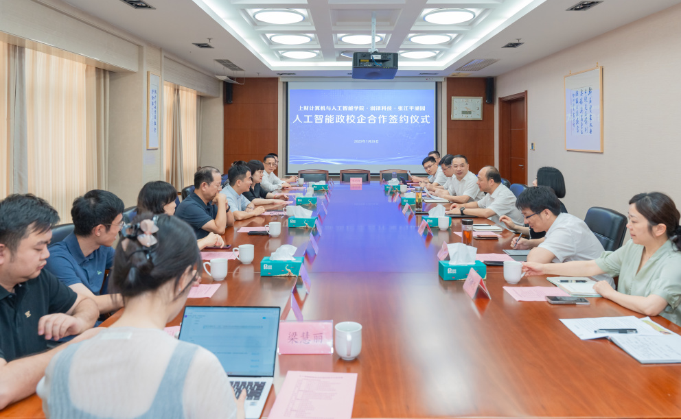 2025年7月29日,上海财经大学计算机与人工智能学院与张江平湖科技园、润泽科技在平湖市行政中心举行人工智能政校企战略合作签约仪式。平湖市委书记仲旭东出席并致辞,新埭镇党委书记潘加林主持仪式。