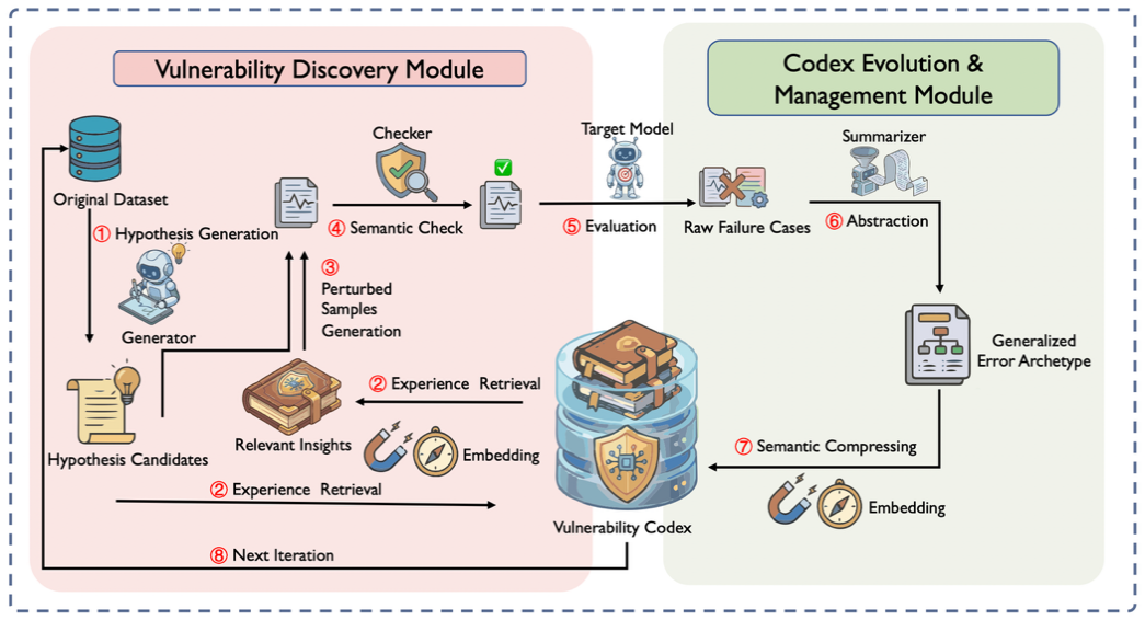 尽管大模型在Text-to-SQL任务中表现出色,但其潜在的可靠性隐患阻碍了实际应用部署。当前的诊断方法多依赖静态的专家定义规则,缺乏自动化探索未知漏洞的能力。为此,我们提出了SAGE框架,用于自主挖掘Text-to-SQL系统中的深层漏洞。SAGE通过为样本生成特定的漏洞假设,并参考一个持续自我演进的“漏洞法典”来合成针对性的扰动,从而迭代式地验证和记录模型缺陷。在BIRD和Spider等基准上的广泛实验表明,SAGE在漏洞挖掘数量和效率上大幅超越了静态专家基线,揭示了当前模型的显著脆弱性,同时也强有力地证明了采用自动化、动态演进框架来全面审查模型鲁棒性的必要性。此外,研究发现这些漏洞模式具备强大的跨模型迁移能力,代表了LLM广义的结构性弱点。最后,基于SAGE生成的样本进行轻量级微调能有效缓解模型缺陷,为构建高可靠的数据库交互接口提供了一条可扩展的闭环修复路径。